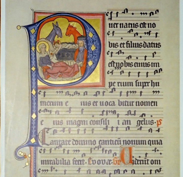Chorstift Kiedrich Gregorianischer Choral im germanischen (Mainzer) Dialekt: Introitus der 3. Weihnachtsmesse aus Codex A gerahmt